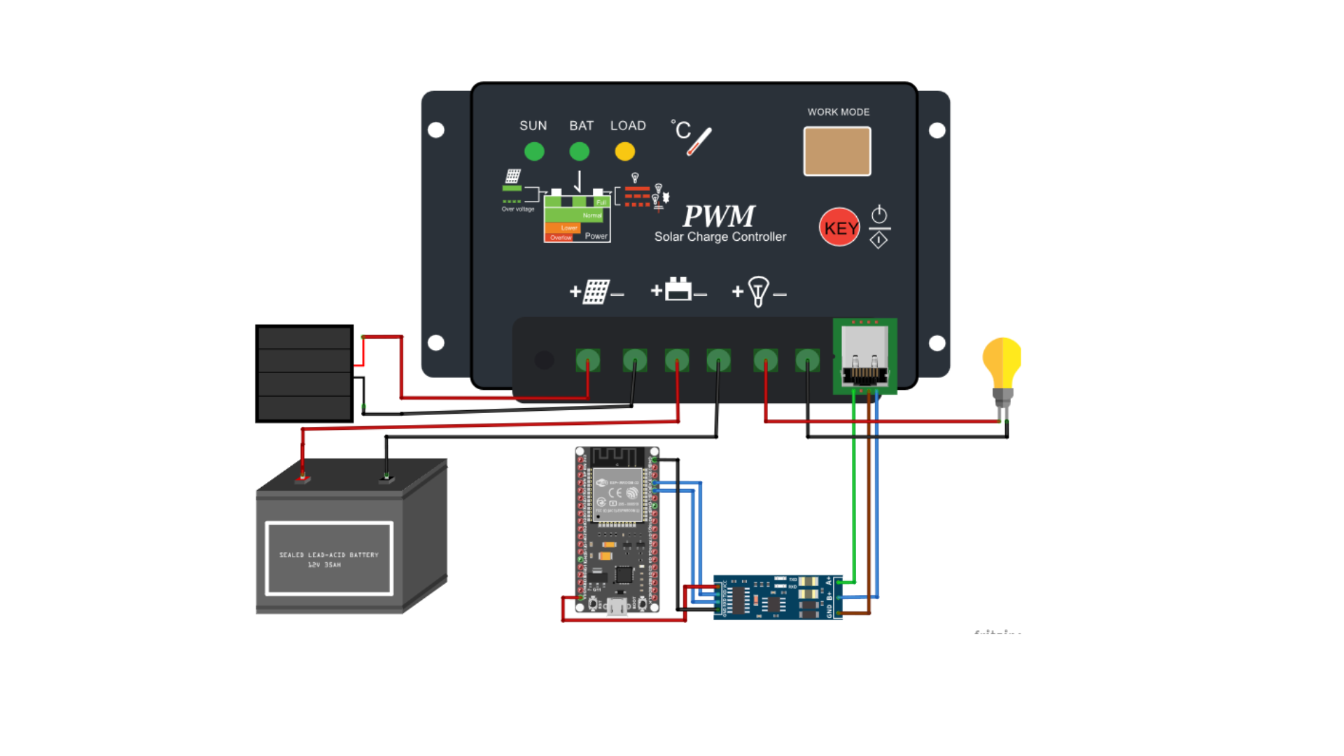 #include#include #include #include "addons/TokenHelper.h" #include "addons/RTDBHelper.h" // Konfigurasi WiFi #define WIFI_SSID "WIFI SSID kalian" #define WIFI_PASSWORD "Password wifi kalian" #include #include WiFiUDP ntpUDP; const long utc = 25200; NTPClient timeClient(ntpUDP, "pool.ntp.org", utc); String CurrentTime, CurrentDate, CurrentDate1; // Konfigurasi Firebase #define API_KEY "API Key kalian" #define DATABASE_URL "Database URL kalian/" #include // #include #include #define ARRAY_SIZE(A) (sizeof(A) / sizeof((A)[0])) // SoftwareSerial mySerial(2, 3); // RX, TX HardwareSerial mySerial(2); // RX, TX const int defaultBaudRate = 9600; int timerTask1, timerTask2, timerTask3; float battChargeCurrent, battDischargeCurrent, battOverallCurrent, battChargePower; float bvoltage, btemp, bremaining, lpower, lcurrent, pvvoltage, pvcurrent, pvpower; float stats_today_pv_volt_min, stats_today_pv_volt_max; uint8_t result; bool rs485DataReceived = true; bool loadPoweredOn = true; ModbusMaster node; // Firebase FirebaseData fbdo; FirebaseAuth auth; FirebaseConfig config; unsigned long sendDataPrevMillis = 0; bool signupOK = false; void setup() { Serial.begin(115200); // mySerial.begin(115200); mySerial.begin(115200, SERIAL_8N1, 16, 17); pinMode(2, OUTPUT); // DE/RE control pin digitalWrite(2, LOW); node.begin(1, mySerial); node.preTransmission(preTransmission); node.postTransmission(postTransmission); Serial.println("Setup OK!"); WiFi.begin(WIFI_SSID, WIFI_PASSWORD); Serial.print("Connecting to Wi-Fi"); while (WiFi.status() != WL_CONNECTED) { Serial.print("."); delay(300); } Serial.println("\nConnected to Wi-Fi"); Serial.println(WiFi.localIP()); timeClient.begin(); config.api_key = API_KEY; config.database_url = DATABASE_URL; config.token_status_callback = tokenStatusCallback; if (Firebase.signUp(&config, &auth, "", "")) { Serial.println("Firebase connected"); signupOK = true; } else { Serial.printf("Firebase signup error: %s\n", config.signer.signupError.message.c_str()); } Firebase.begin(&config, &auth); Firebase.reconnectWiFi(true); } void preTransmission() { digitalWrite(2, HIGH); // Control DE/RE pin } void postTransmission() { digitalWrite(2, LOW); } typedef void (*RegistryList[])(); RegistryList Registries = { AddressRegistry_3100, AddressRegistry_3106, AddressRegistry_310D, AddressRegistry_311A, AddressRegistry_331B, }; uint8_t currentRegistryNumber = 0; void nextRegistryNumber() { currentRegistryNumber++; if (currentRegistryNumber >= ARRAY_SIZE(Registries)) { currentRegistryNumber = 0; } } void executeCurrentRegistryFunction() { Registries[currentRegistryNumber](); } uint8_t setOutputLoadPower(uint8_t state) { Serial.print("Writing coil 0x0006 value to: "); Serial.println(state); delay(10); result = node.writeSingleCoil(0x0006, state); if (result == node.ku8MBSuccess) { node.getResponseBuffer(0x00); Serial.println("Success."); } return result; } uint8_t readOutputLoadState() { delay(10); result = node.readHoldingRegisters(0x903D, 1); if (result == node.ku8MBSuccess) { loadPoweredOn = (node.getResponseBuffer(0x00) & 0x02) > 0; Serial.print("Set success. Load: "); Serial.println(loadPoweredOn); } else { Serial.println("Failed to read register 0x903D!"); } return result; } void AddressRegistry_3100() { result = node.readInputRegisters(0x3100, 6); if (result == node.ku8MBSuccess) { pvvoltage = node.getResponseBuffer(0x00) / 100.0f; Serial.print("PV Voltage: "); Serial.println(pvvoltage); pvcurrent = node.getResponseBuffer(0x01) / 100.0f; Serial.print("PV Current: "); Serial.println(pvcurrent); pvpower = (node.getResponseBuffer(0x02) | node.getResponseBuffer(0x03) << 16) / 100.0f; Serial.print("PV Power: "); Serial.println(pvpower); bvoltage = node.getResponseBuffer(0x04) / 100.0f; Serial.print("Battery Voltage: "); Serial.println(bvoltage); battChargeCurrent = node.getResponseBuffer(0x05) / 100.0f; Serial.print("Battery Charge Current: "); Serial.println(battChargeCurrent); } } void AddressRegistry_3106() { result = node.readInputRegisters(0x3106, 2); if (result == node.ku8MBSuccess) { battChargePower = (node.getResponseBuffer(0x00) | node.getResponseBuffer(0x01) << 16) / 100.0f; Serial.print("Battery Charge Power: "); Serial.println(battChargePower); } } void AddressRegistry_310D() { result = node.readInputRegisters(0x310D, 3); if (result == node.ku8MBSuccess) { lcurrent = node.getResponseBuffer(0x00) / 100.0f; Serial.print("Load Current: "); Serial.println(lcurrent); lpower = (node.getResponseBuffer(0x01) | node.getResponseBuffer(0x02) << 16) / 100.0f; Serial.print("Load Power: "); Serial.println(lpower); } else { rs485DataReceived = false; Serial.println("Read register 0x310D failed!"); } } void AddressRegistry_311A() { result = node.readInputRegisters(0x311A, 2); if (result == node.ku8MBSuccess) { bremaining = node.getResponseBuffer(0x00) / 1.0f; Serial.print("Battery Remaining %: "); Serial.println(bremaining); btemp = node.getResponseBuffer(0x01) / 100.0f; Serial.print("Battery Temperature: "); Serial.println(btemp); } else { rs485DataReceived = false; Serial.println("Read register 0x311A failed!"); } } void AddressRegistry_331B() { result = node.readInputRegisters(0x331B, 2); if (result == node.ku8MBSuccess) { battOverallCurrent = (node.getResponseBuffer(0x00) | node.getResponseBuffer(0x01) << 16) / 100.0f; Serial.print("Battery Discharge Current: "); Serial.println(battOverallCurrent); } else { rs485DataReceived = false; Serial.println("Read register 0x331B failed!"); } } void UploadFirebase() { if (Firebase.ready() && signupOK && (millis() - sendDataPrevMillis > 15000 || sendDataPrevMillis == 0)) { sendDataPrevMillis = millis(); Firebase.RTDB.setFloat(&fbdo, "MPPT/BattChargeCurrent", battChargeCurrent); Firebase.RTDB.setFloat(&fbdo, "MPPT/BattDischargeCurrent", battDischargeCurrent); Firebase.RTDB.setFloat(&fbdo, "MPPT/BattOverallCurrent", battOverallCurrent); Firebase.RTDB.setFloat(&fbdo, "MPPT/BattChargePower", battChargePower); Firebase.RTDB.setFloat(&fbdo, "MPPT/Bvoltage", bvoltage)